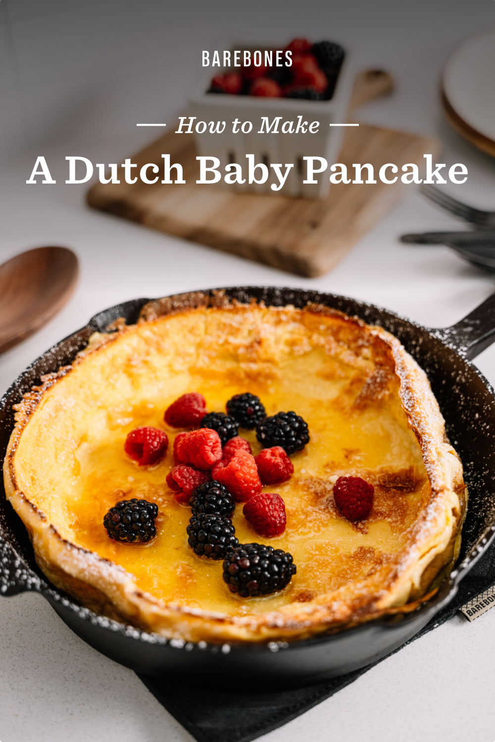 - Bake your dutch baby pancake for 20-25 minutes at 425°F. It will rise quite a bit while baking but reduce once taken out. Your pancake is finished baking once it is golden brown.