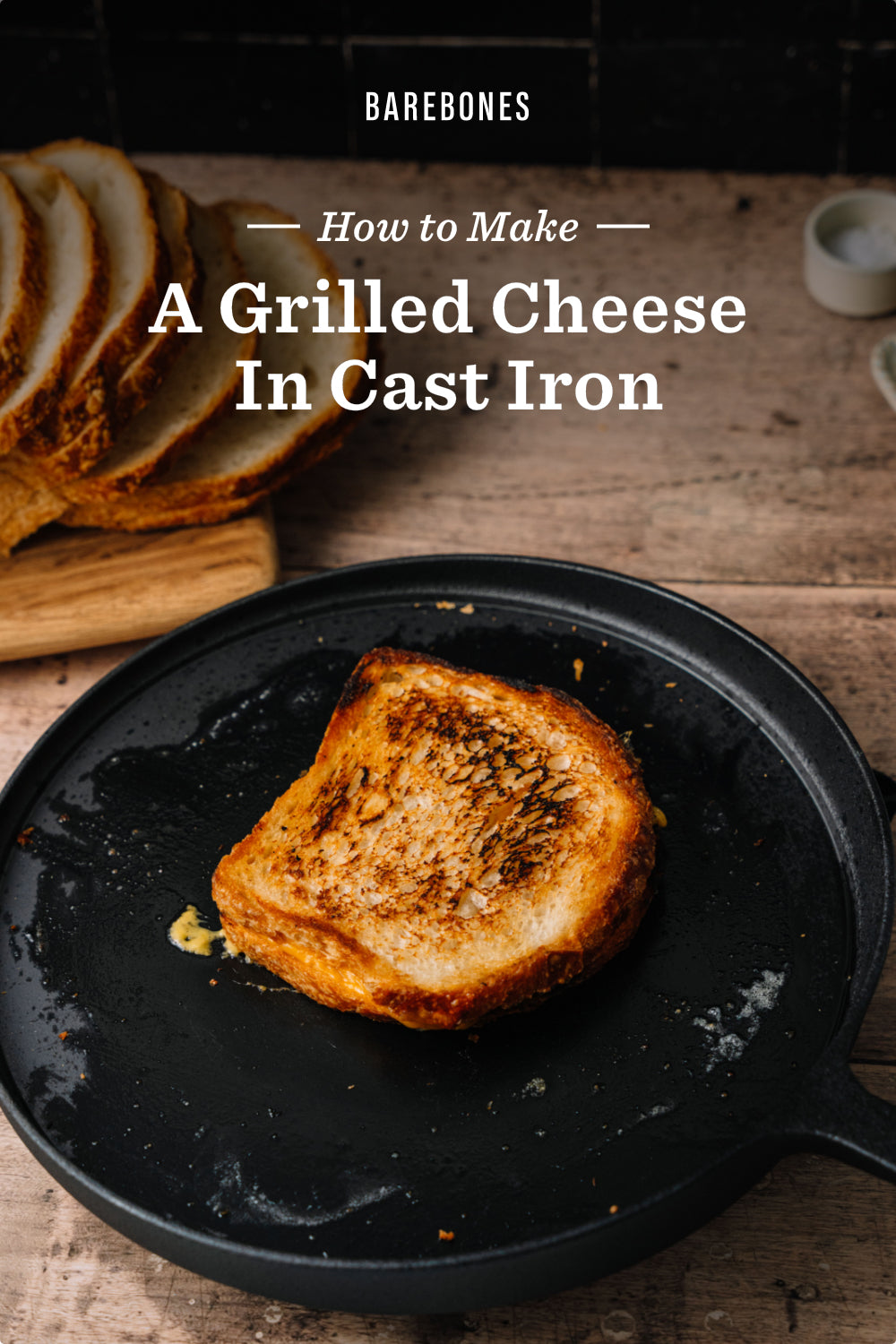 - Once both sides of the bread are perfectly toasted, pile on your cheese, either sliced or grated, and cover with the second slice of bread—the crispy side facing the cheese.