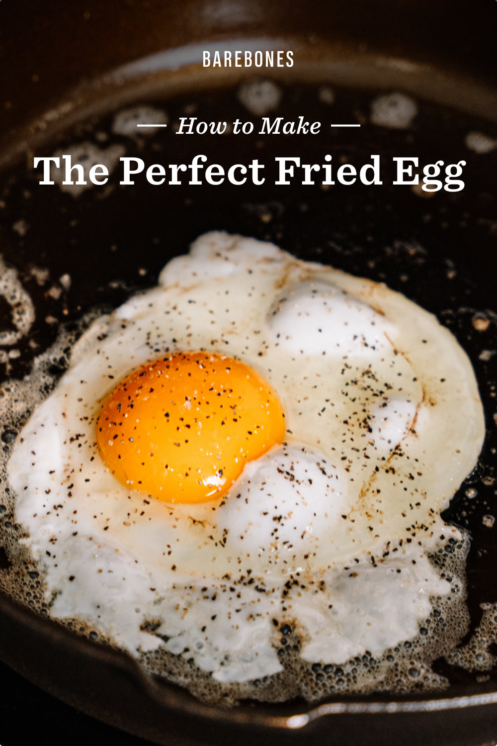 - Let the egg cook without touching it for about 1 minute, or until the inner yolk has about ¼ of an inch of uncooked egg white surrounding it. Add some salt and pepper.