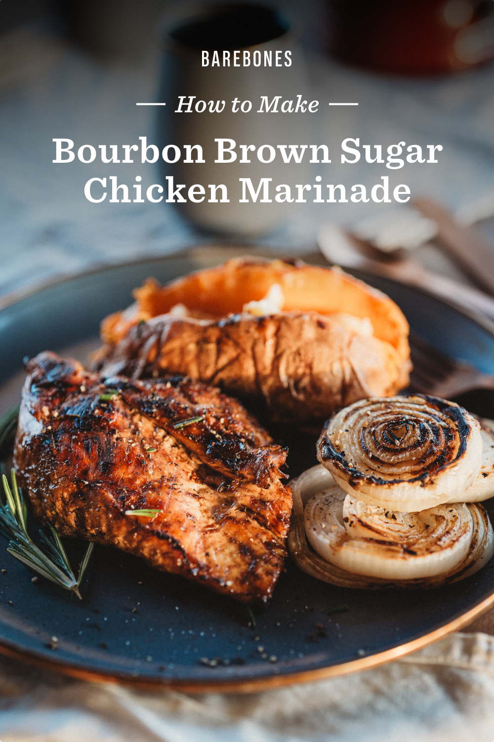 - For the chicken marinade recipe, pour the bourbon, brown sugar, balsamic vinegar, soy sauce, olive oil, mustard, garlic, rosemary, and crushed red pepper flakes into a jar with a lid. Season with 1-2 teaspoons of salt and ground black pepper, as desired. Put the lid on the jar and shake vigorously to combine.