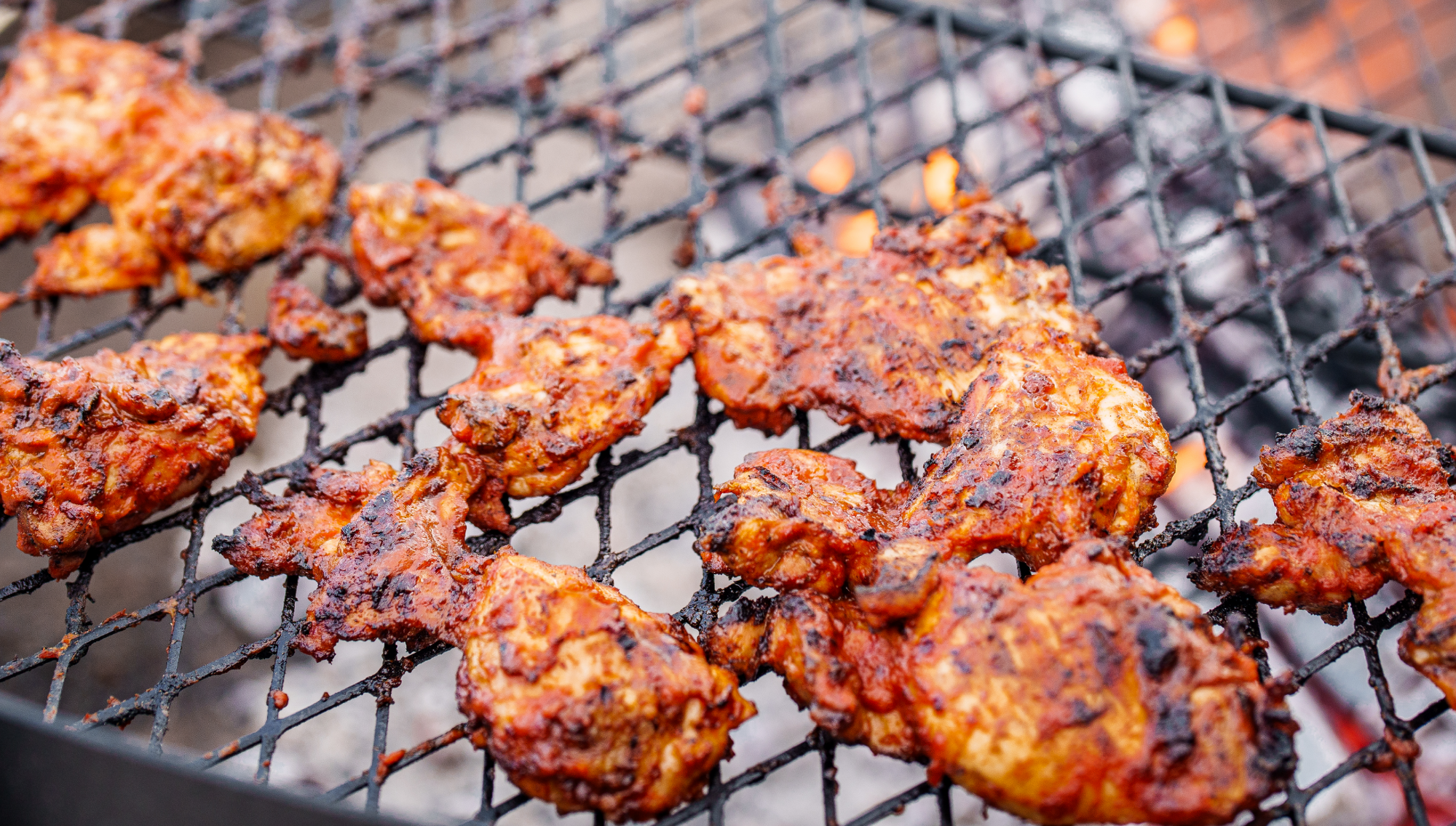 - Transfer half of the sauce to a medium-sized bowl, reserving the other half for basting on the grill. Place the chicken thighs in the sauce and mix until evenly covered. Allow the chicken to marinate in the refrigerator for 2-3 hours or overnight.